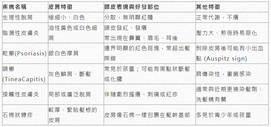 一、 頭皮屑的鑑別診斷 (Differential Diagnosis)
